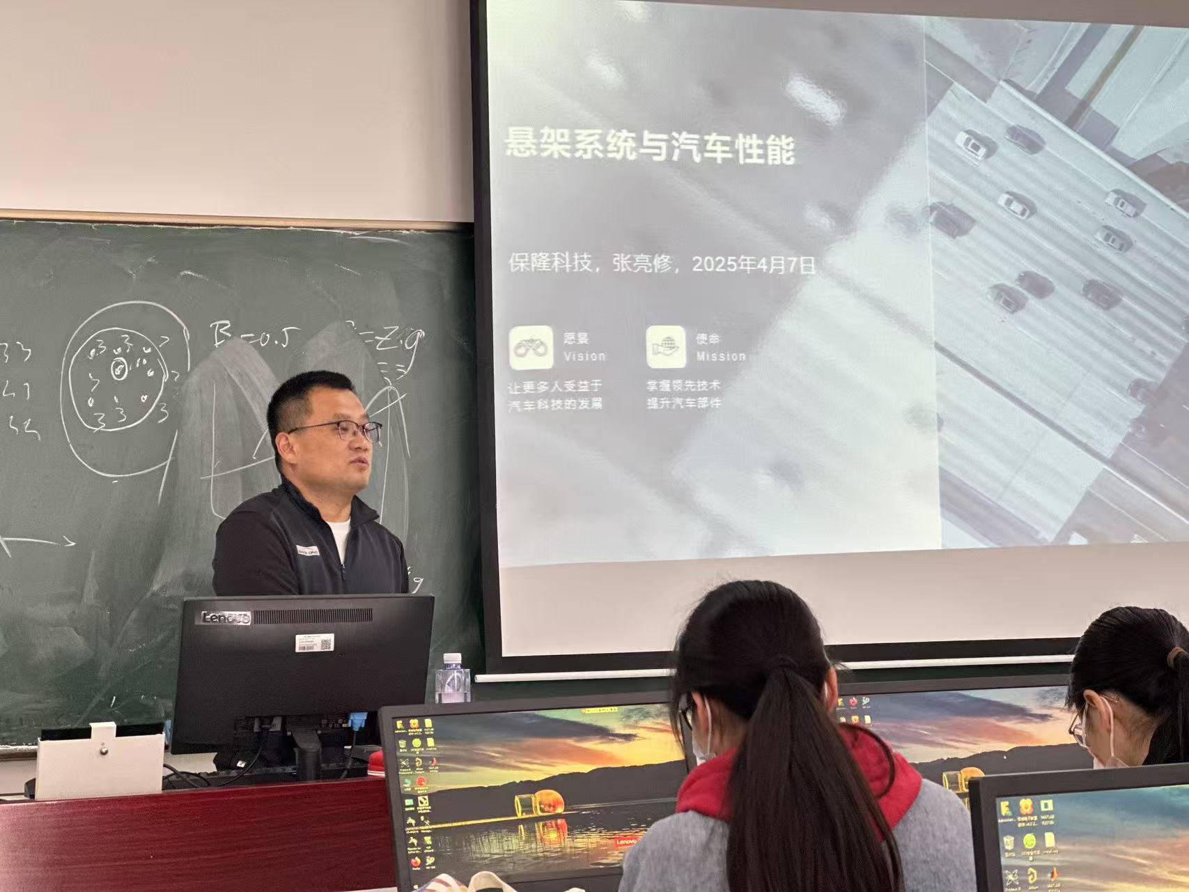 On the morning of April 7, 2025, the Department of Automotive Service Engineering invited Senior Engineer Zhang Liangxiu from Shanghai Baolong Automotive Technology Co., Ltd. to give a public lecture titled "Suspension System and Automotive Performance" to the "Automotive Theory" class.