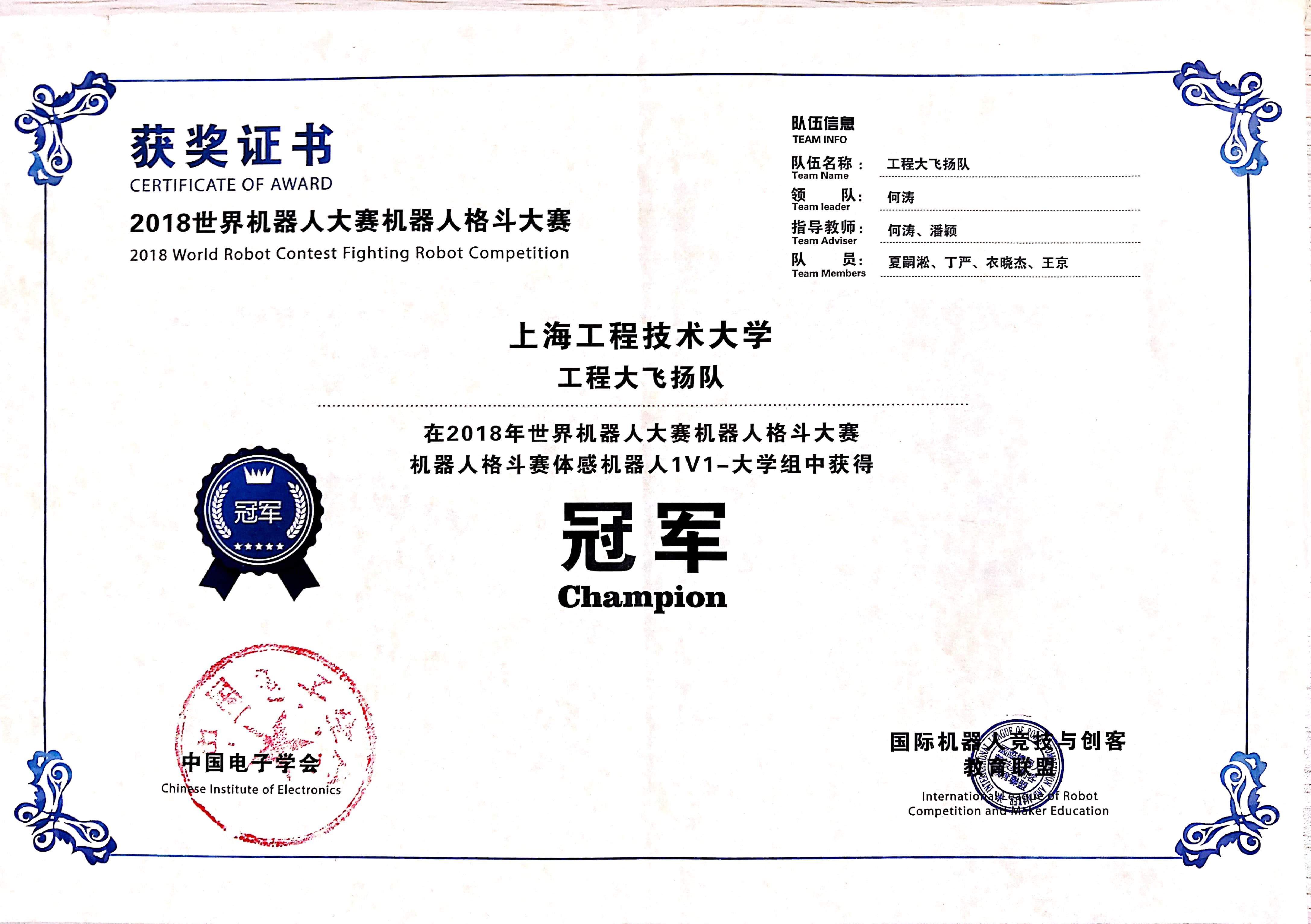 2017.08 | 中国电子学会 | 世界机器人大赛格斗机器人大赛 | 大学组冠亚军 |